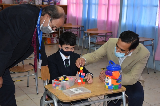 Tras un recorrido por las instalaciones, las autoridades constataron la correcta aplicación de las normas establecidas por la Autoridad Sanitaria, como la aplicación de un control de temperatura en el ingreso de los estudiantes, aforo en cada sala de clases y distanciamiento físico de los niños en las aulas, uso de mascarillas, entre otros, que permiten la realización de las clases en el recinto educacional.
