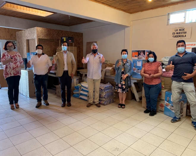 La Unión Comunal de Juntas de Vecinos de Santa Cruz fue la encargada de encabezar la recepción de esta ayuda, adquirir los productos que requería cada barrio y repartirla a las juntas de vecinos, acción que el Gobernador Cuadra pudo verificar positivamente en la actividad.