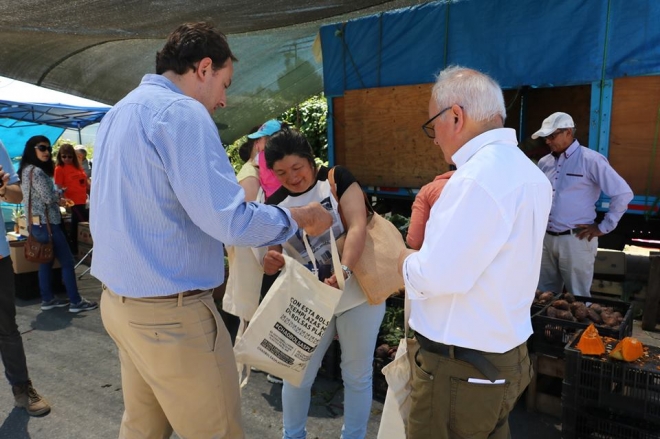 “La finalidad de esta actividad es que los vecinos no tengan que viajar a otras ciudades para realizar sus consultas o trámites”, afirmó el Gobernador, quien junto al alcalde Castro también visitaron la feria libre aledaña, donde incentivaron la campaña “Chao Bolsas Plásticas”.